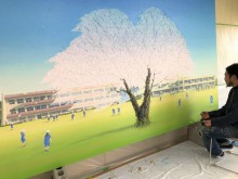 双葉郡富岡町の富岡第一・第二小中学校(富岡町大字小浜字中央)で現在、埼玉在住の画家・加茂昴(かも・あきら)さんが校内に展示する作品を公開制作している。